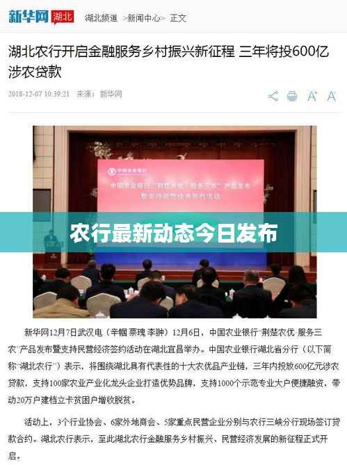 随着金融行业的快速发展,农业银行作为国内领先的金融机构之一,其最新消息备受关注,本文将围绕“最新农行消息今日消息”这一主题展开,介绍农行近期的发展动态、创新举措、服务升级以及市场动态等方面的信息。